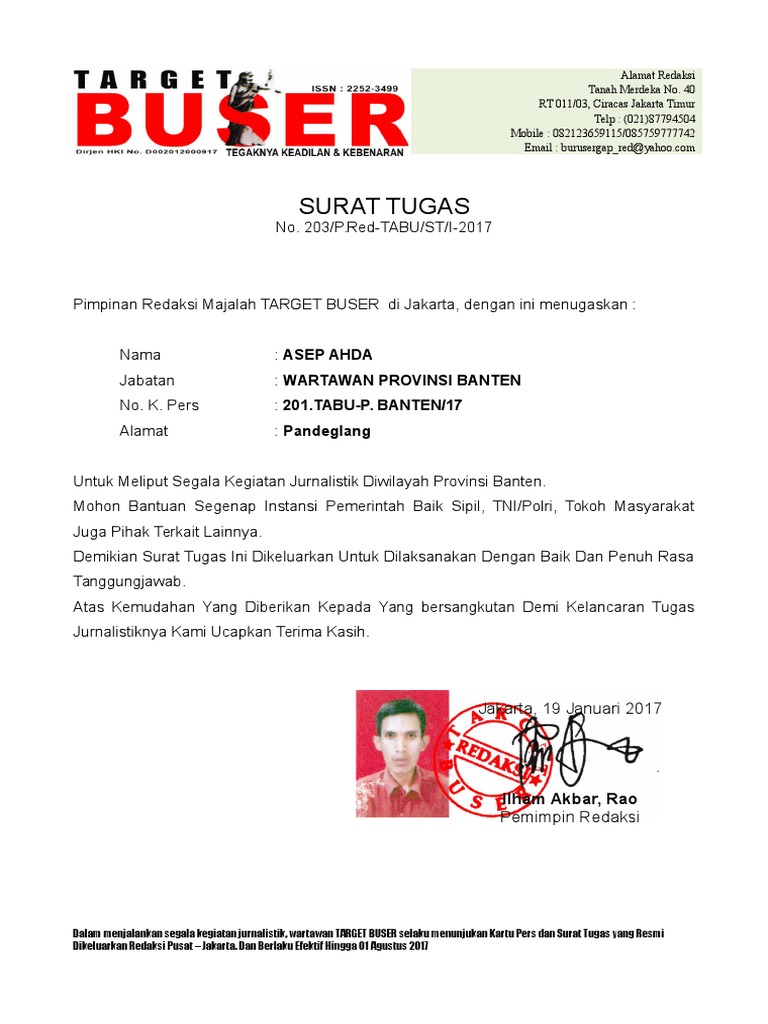 Contoh Surat Tugas Kerja Wartawan Nusagates